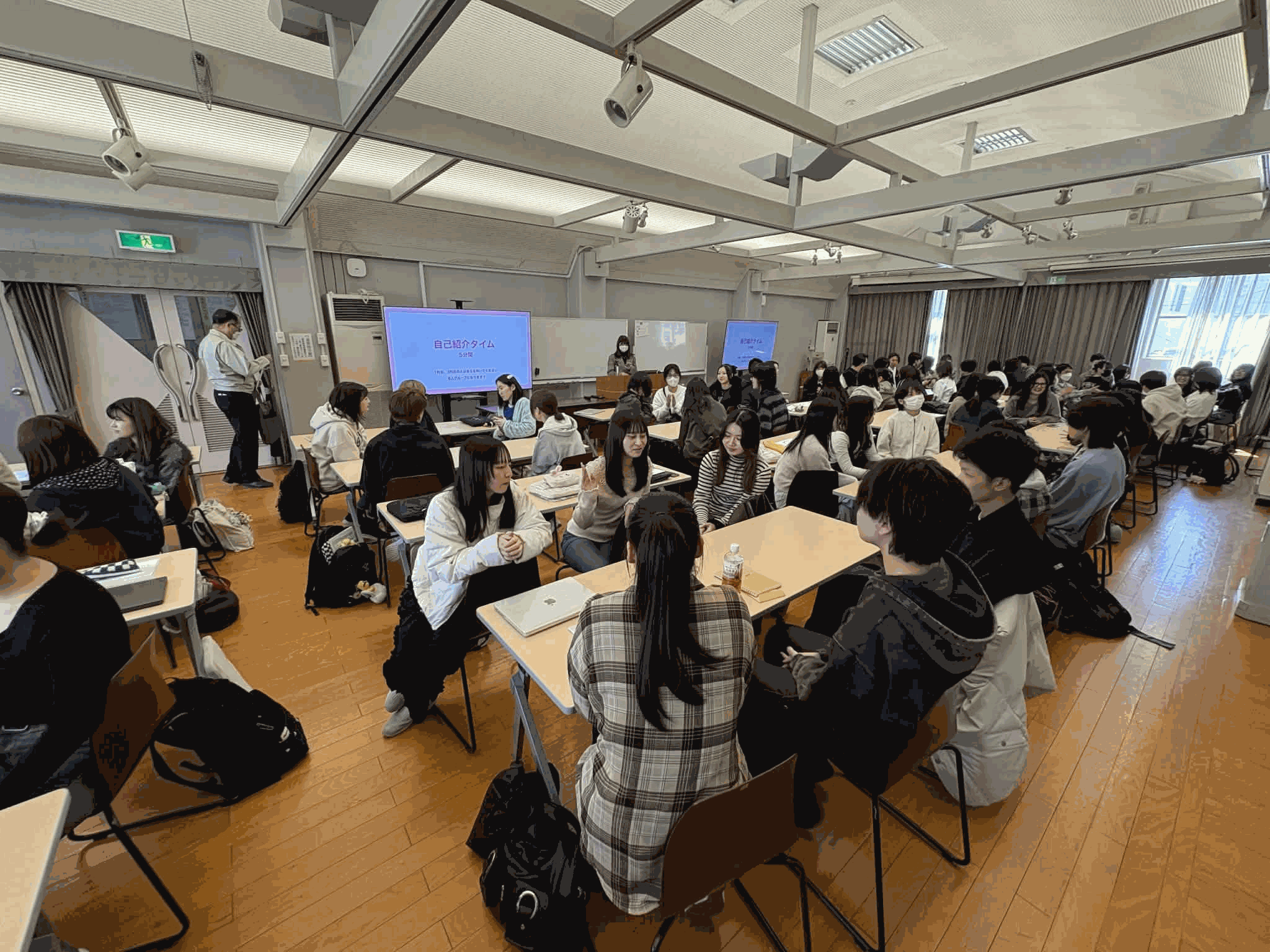 例年以上に多くの新入生を迎えた今年は、2階ギャラリーが一気に活気づき、あちこちで笑顔や会話が生まれる、にぎやかなスタートとなりました。最初は少し緊張した様子の新入生も、先輩たちの声かけや交流を通して、少しずつ表情がほぐれていく様子が印象的でした。